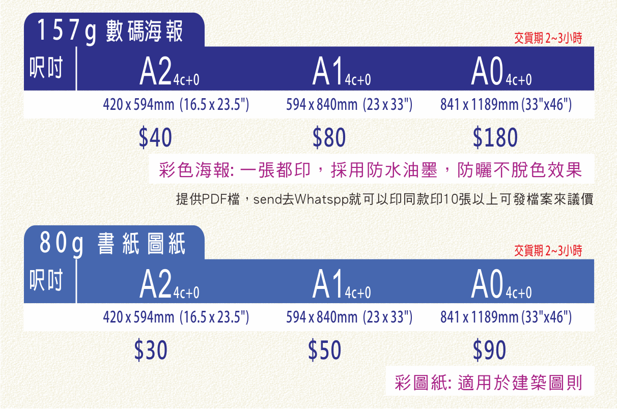 提供圖檔.JPG或PDF,send去Whatspp, 同款印5張以上可議價